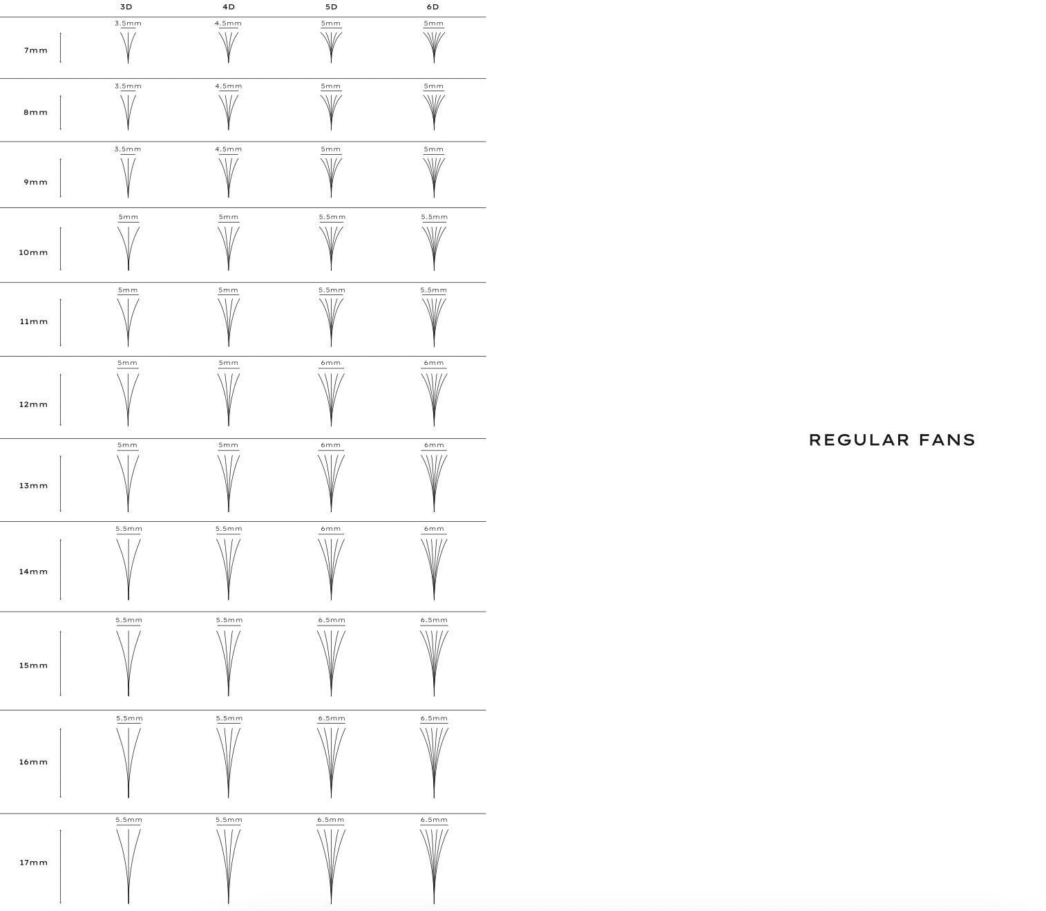 Our promade fans are still HANDMADE (just someone else did it for you!), and are available in single length trays of 7mm up to 15mm, in C, CC and D curls. You can choose from 3D (600 or 1000 fans), 4D, 5D and 6D!