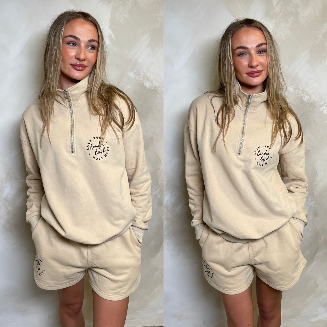 Das London Lash Sweatshirt & Shorts Set ist dein kuscheliges Must-have für den Herbst. Aus ultraweichem Stoff in einem eleganten Beigeton gefertigt – perfekt, um bei der Arbeit bequem und stylisch zu bleiben.